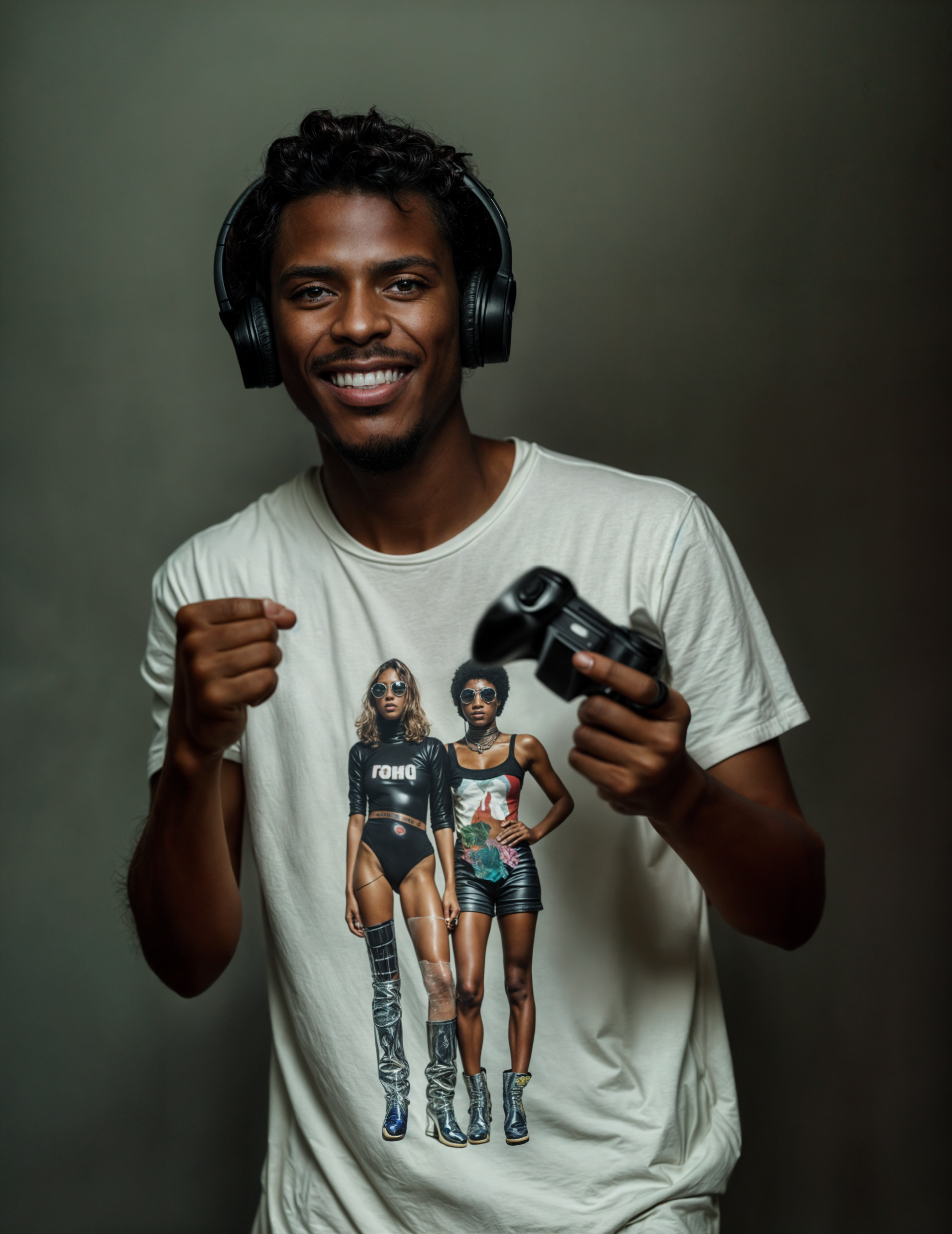 Whether you're turning heads at a party, expressing yourself at a festival, or simply elevating your everyday wardrobe, the "Golden Groove Rider" t-shirt is your go-to choice for unforgettable style.