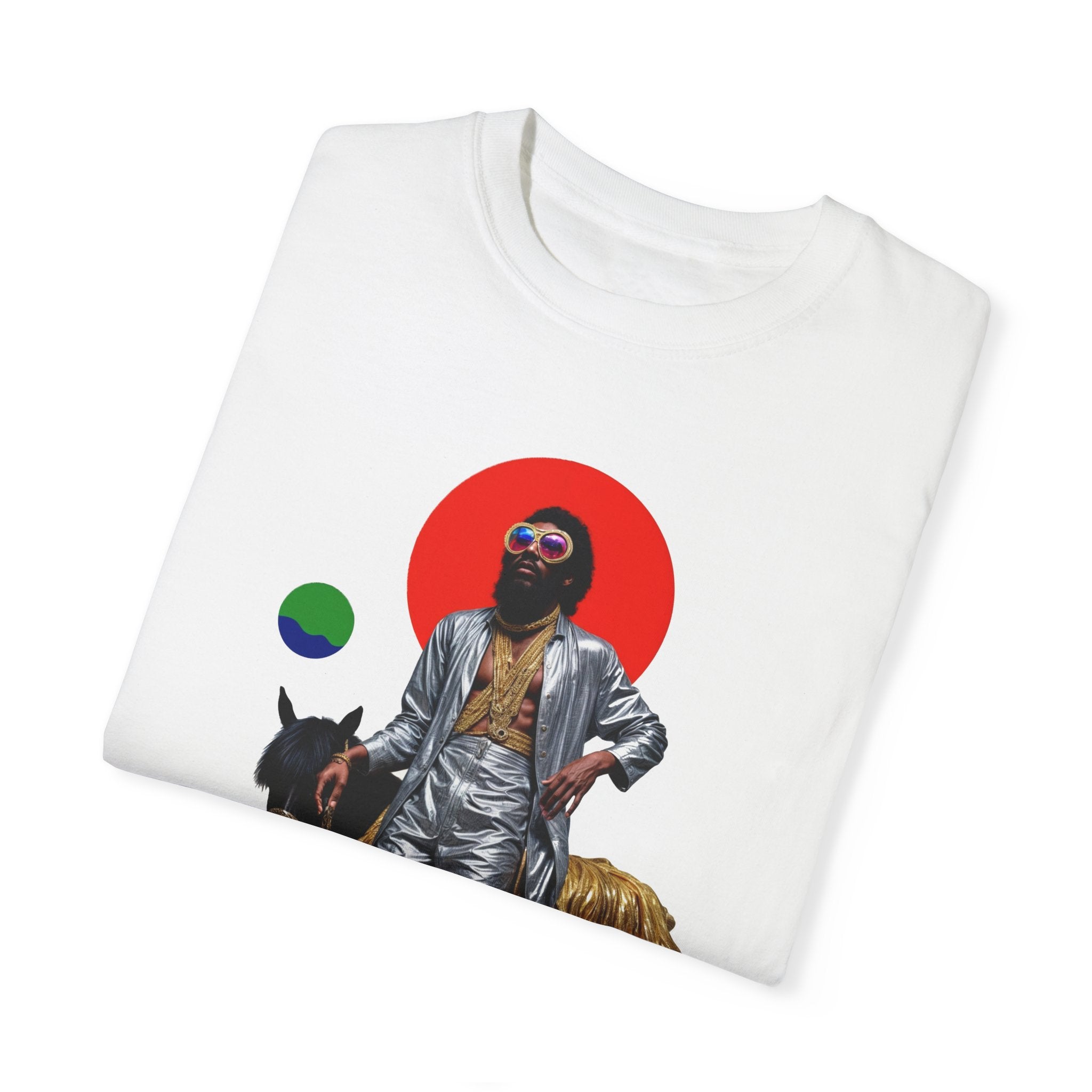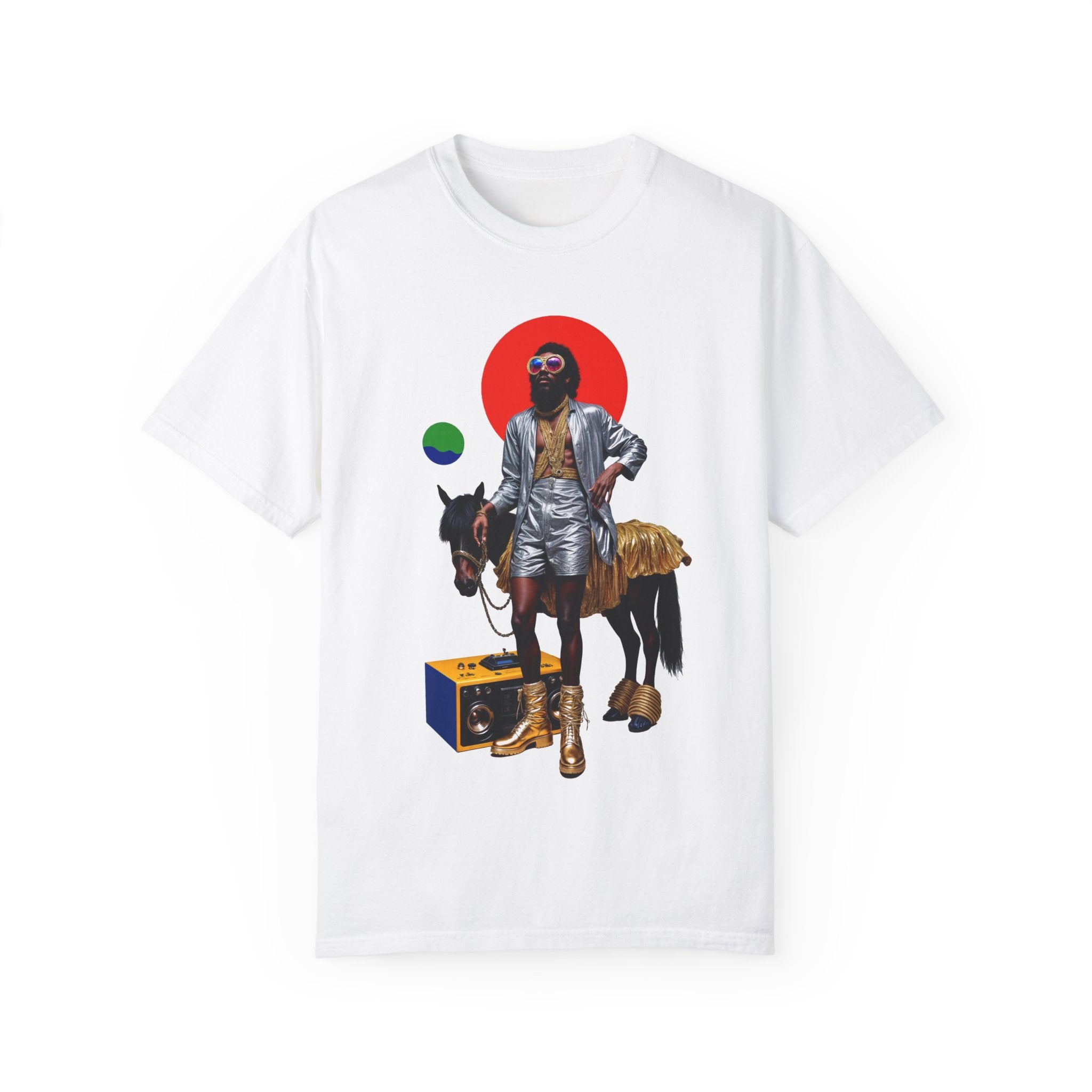 Whether you're turning heads at a party, expressing yourself at a festival, or simply elevating your everyday wardrobe, the "Golden Groove Rider" t-shirt is your go-to choice for unforgettable style.
